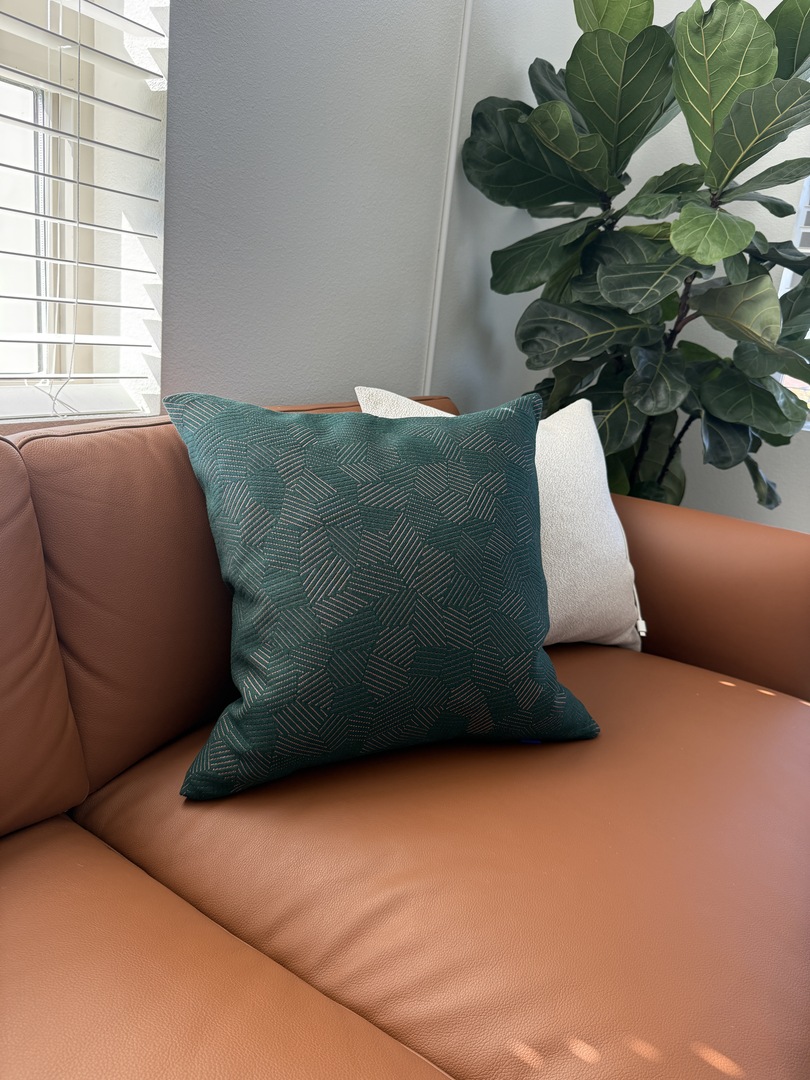 Fabric is amazing. Insert isn't stuffed with a lot of feathers so they stay flat/slouchy and require a lot of fluffing to become somewhat "full" looking. Not very comfortable to rest on as they deflate easily. Would suggest doubling the fill.