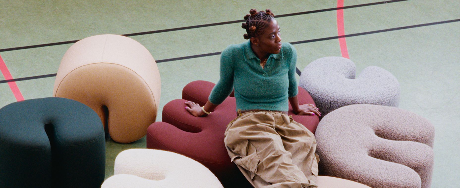 Graphic, arresting, refreshingly carefree—a Palma Pouf upgrades any space. Launching June 12.